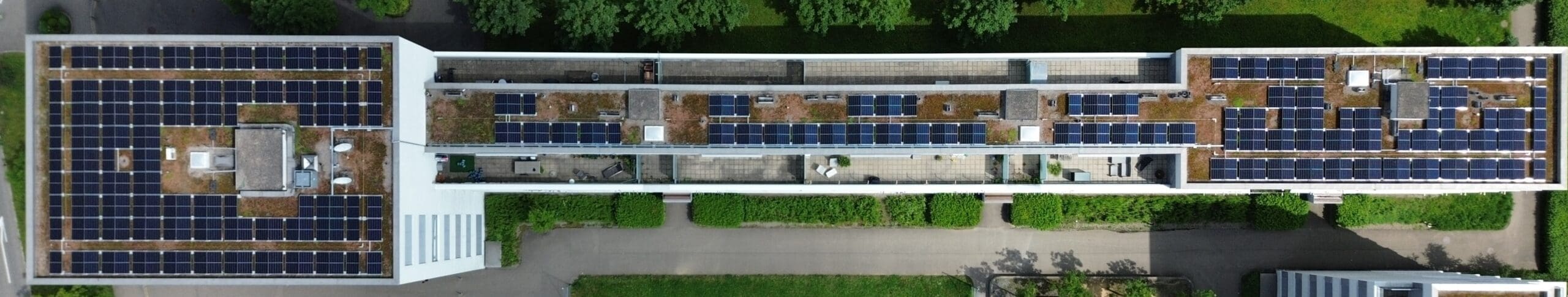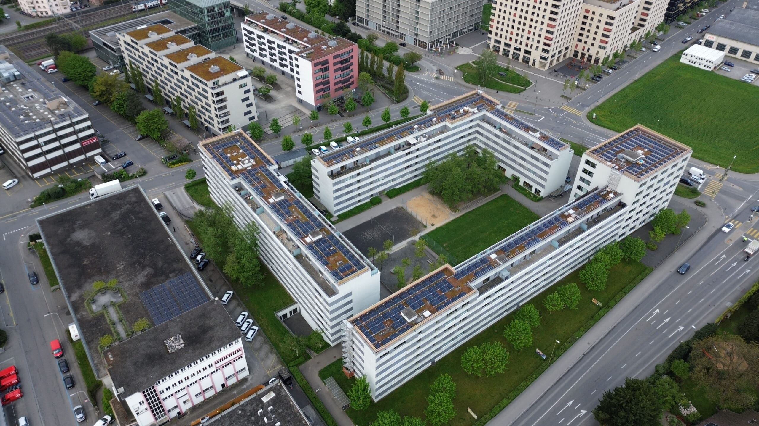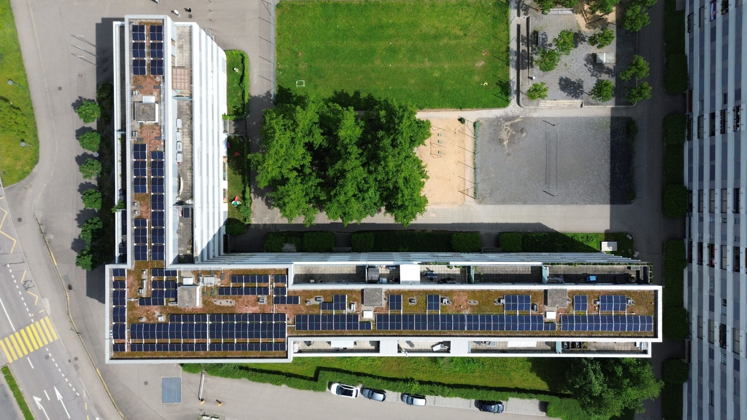 Die in Schlieren errichtete Photovoltaikanlage (PVA) versorgt 174 Wohnungen und 2.900 m² Gewerbe- und Büroflächen mit Solarstrom.